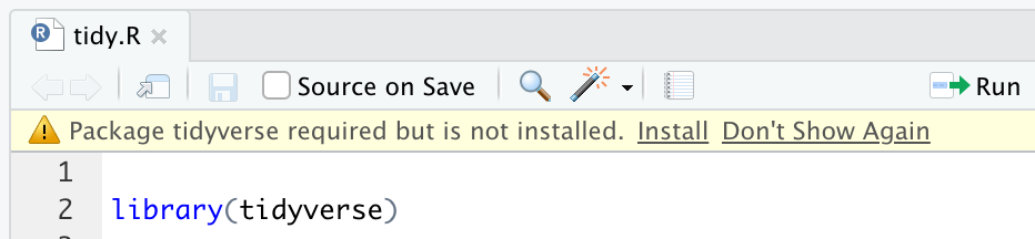 install.packages("packagename") will install the most recent version of the package to ensure you get the same results as meIf you don’t have a package installed, you may see this (you can click Install!)